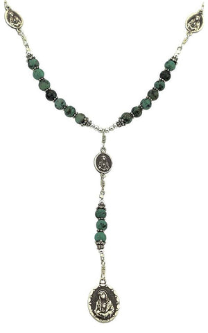 Handmade Sterling Silver 7 Sorrows Rosary, it's made with Sterling Silver heavy gauge wire, Large Sterling Silver 7 Sorrows Medals Set, Silver Beads and 6 millimeters round shape South African Turquoise Semi-Precious stone beads.