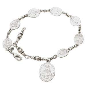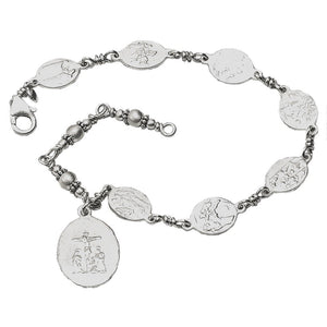 Handmade Sterling Silver Seven Sorrows Medal set Bracelet made with heavy gauge wire, very strong and durable.