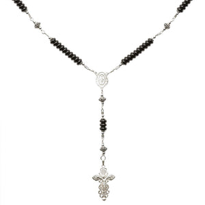 Handmade Sterling Silver Traditional Rosary. Made with sterling silver heavy gauge wire (very resistant), sterling silver beads, a sterling silver Miracle Medal and a sterling silver Crucifix, it also has Onyx Gem 6 millimeter Button shape (53 onyx gem).