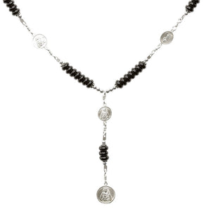 Sterling Silver hand crafted 7 Sorrows Rosary. Made with Sterling Silver 7 Sorrows Medals Set, Silver Beads and Roundel shape 6mm Black Onyx beads.