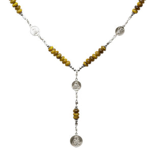 Sterling Silver handmade 7 Sorrows Rosary. Made with Sterling Silver 7 Sorrows Medals Set, Silver Beads and Roundel shape 6mm Tiger Eyes beads.
